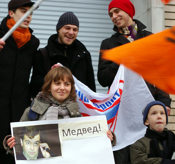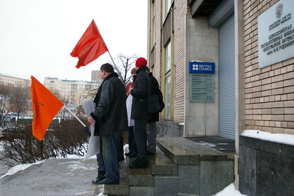 Прозвучали лозунги: "Медвед, верни Британский совет!", "We love Britain!", "Путин, учи английский!", а также произведения культовой рок-группы "Beatles".