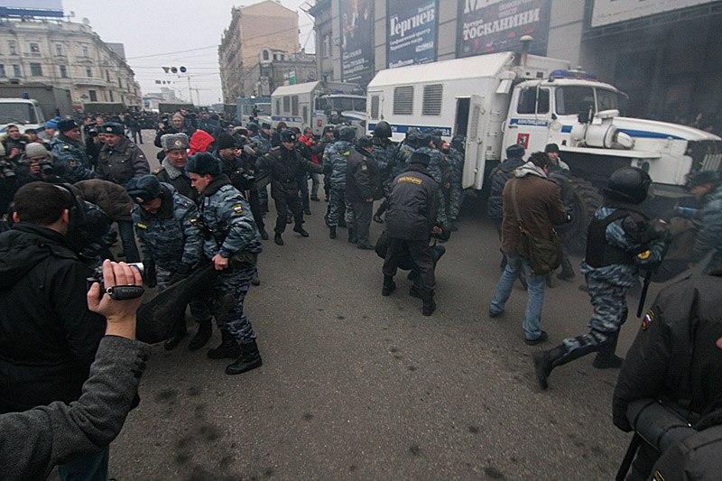 Напомним, что "Марш несогласных", который должен был начаться на Триумфальной площади, был жестоко разогнан бойцами ОМОНа и сотрудниками правоохранительных органов. В результате были задержаны несколько десятков человек, которых доставили в разные ОВД города.