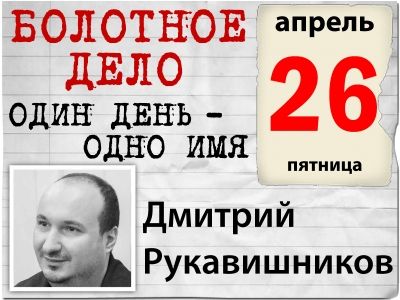 26 апреля — день солидарности с Дмитрием Рукавишниковым, обвиняемым по "Болотному делу". Дмитрий был арестован последним из "болотных узников. Ему 35 лет. Два гуманитарных образования. Преподавал в школе. Сейчас работает в сфере ЖКХ в городе Иваново.