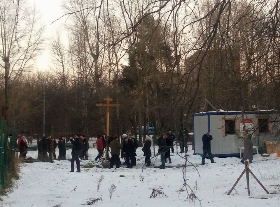 Местные жители установили палатки и ведут круглосуточное дежурство напротив окруженной забором стройплощадки, где уже были начаты земельные работы перед постройкой храмового комплекса. Активисты считают строительство незаконным. В октябре 2015 года градостроительно-земельная комиссия (ГЗК) Москвы приняла решение, что строительство храма в парке "Торфянка" является нецелесообразным.